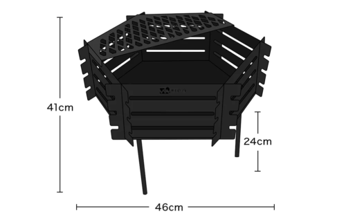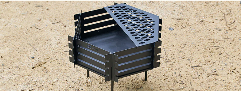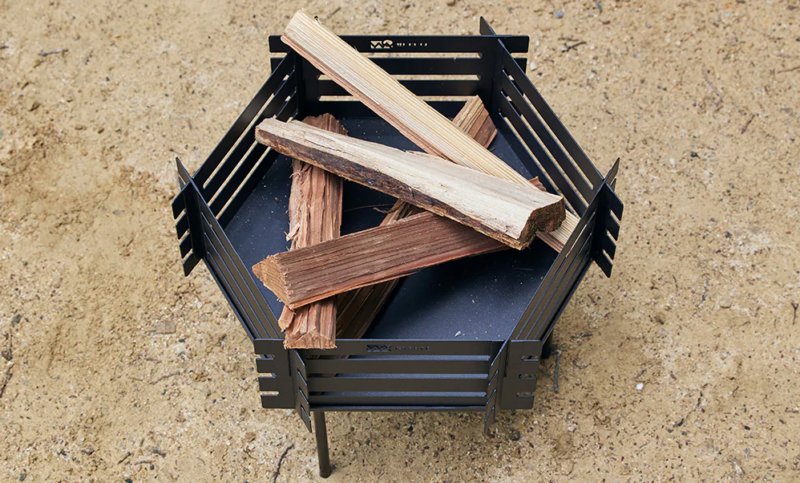 この焚き火台は、6枚のパネル構造が採用されていて、持ち運びやすさとコンパクト設計を追求した鉄製の焚き火台となっています。